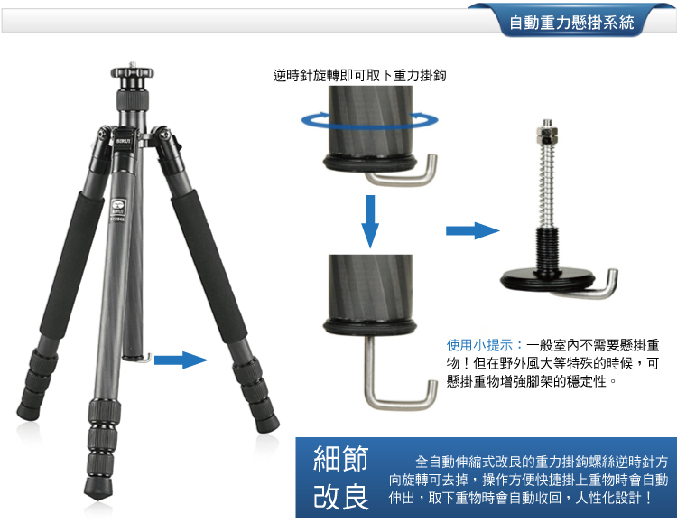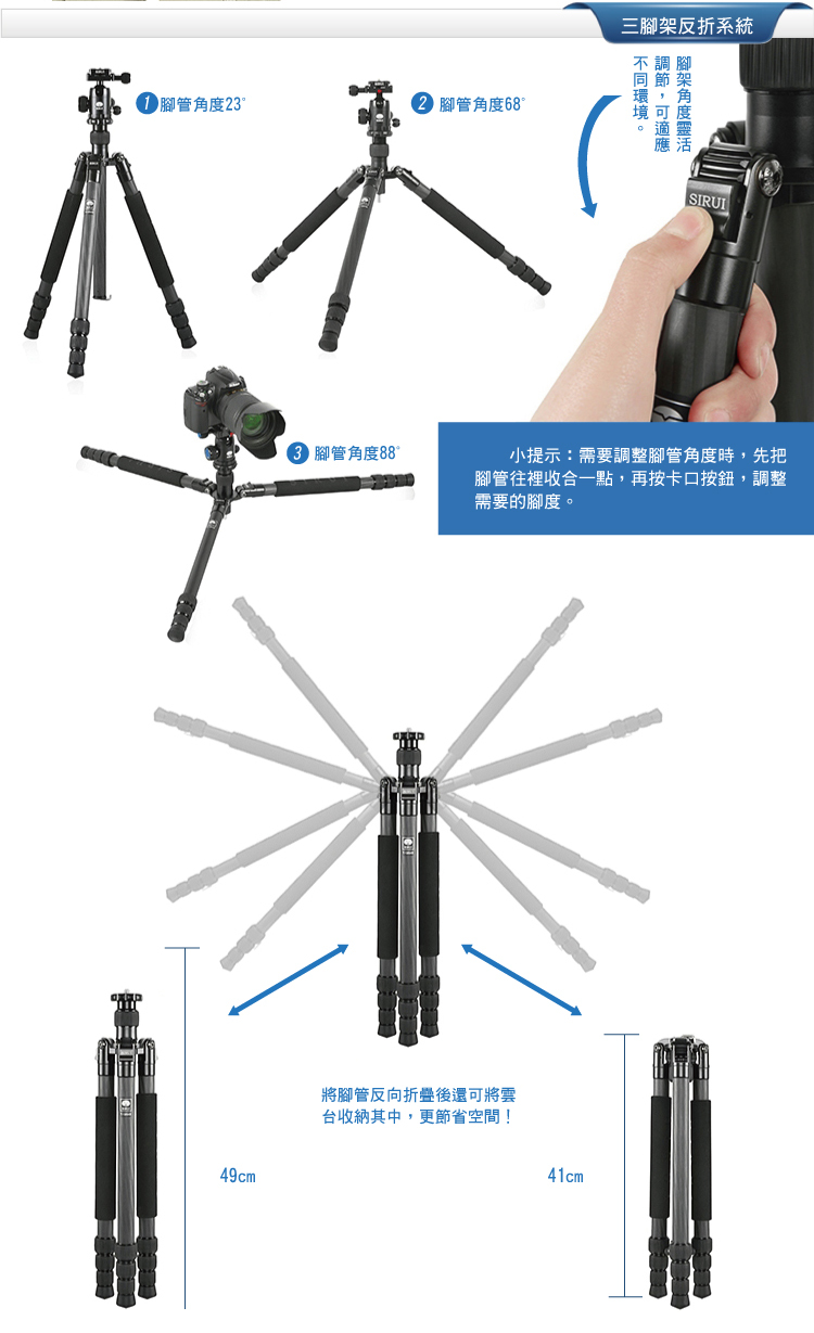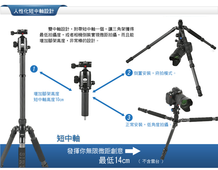 4. 中軸可以倒插,適用於特殊角度拍攝;