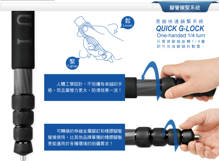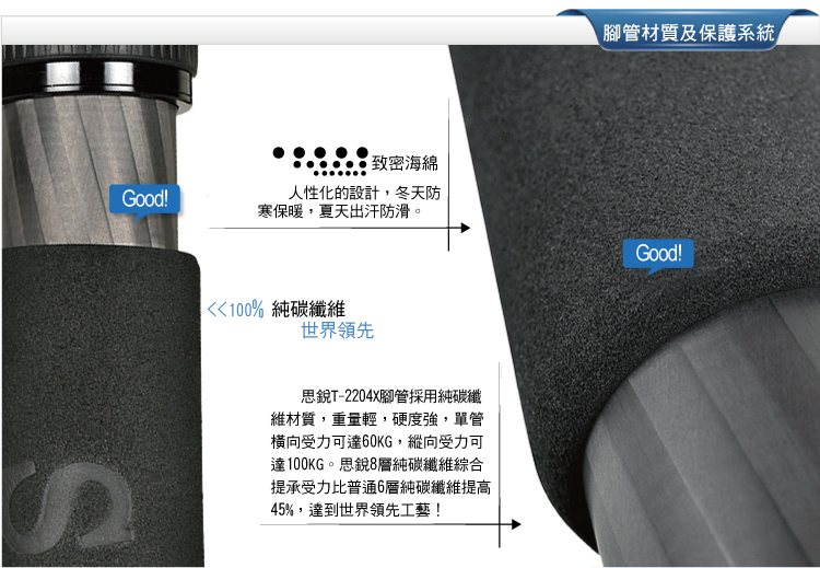 3. 腳管採用8層碳素纖維,十分輕便;
