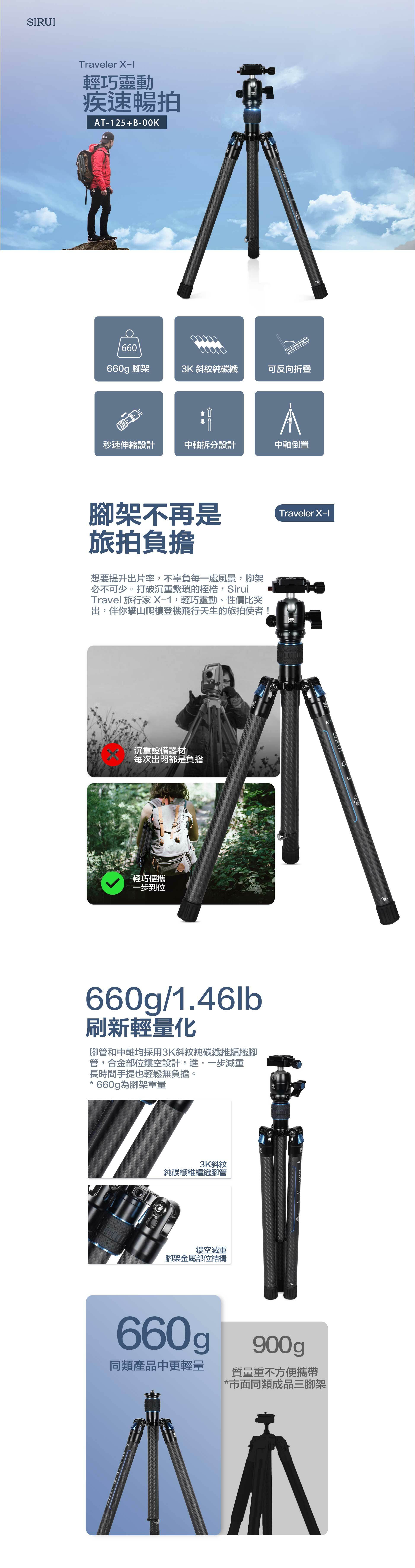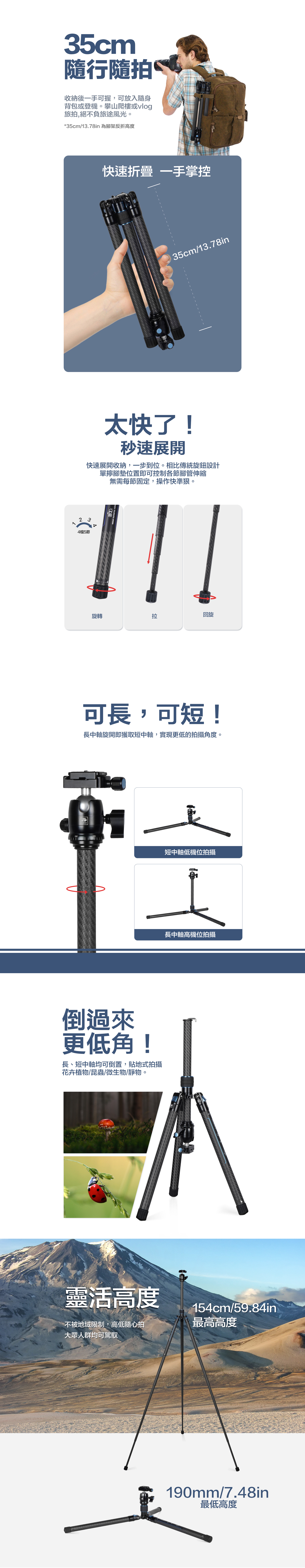 ■ 腳架重量僅660g、高度35cm空間,小巧好攜帶