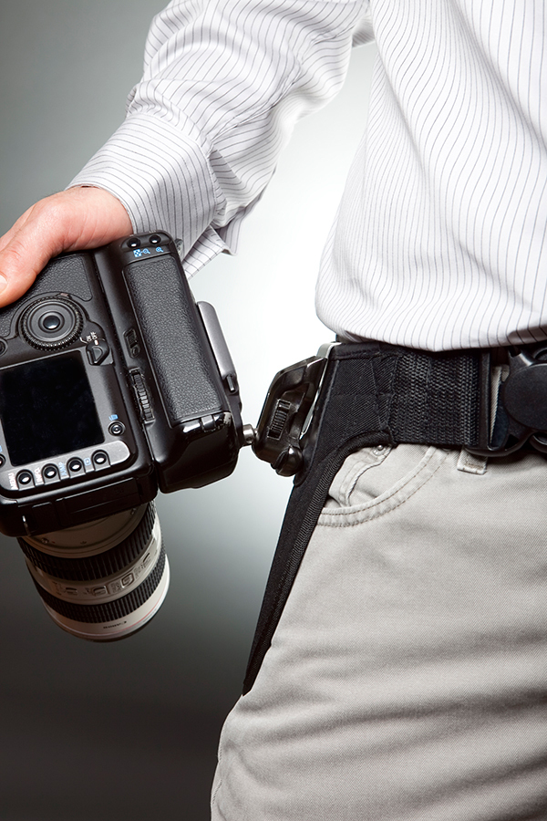 以滑動的方式至你的Holster 相機插掛巢上,讓你的相機可以自在的放置在你的腰間。