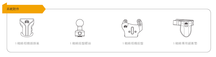 SpiderPro SCS (Single Camera System) 規格附有: SpiderPro Holster 蜘蛛相機插掛巢、 SpiderPro Plate 蜘蛛相機座盤、 SpiderPro Pin 蜘蛛座盤螺絲、 SpiderPro Pad 蜘蛛專用緩衝墊。 請認明立福公司貨,售後服務有保證! |