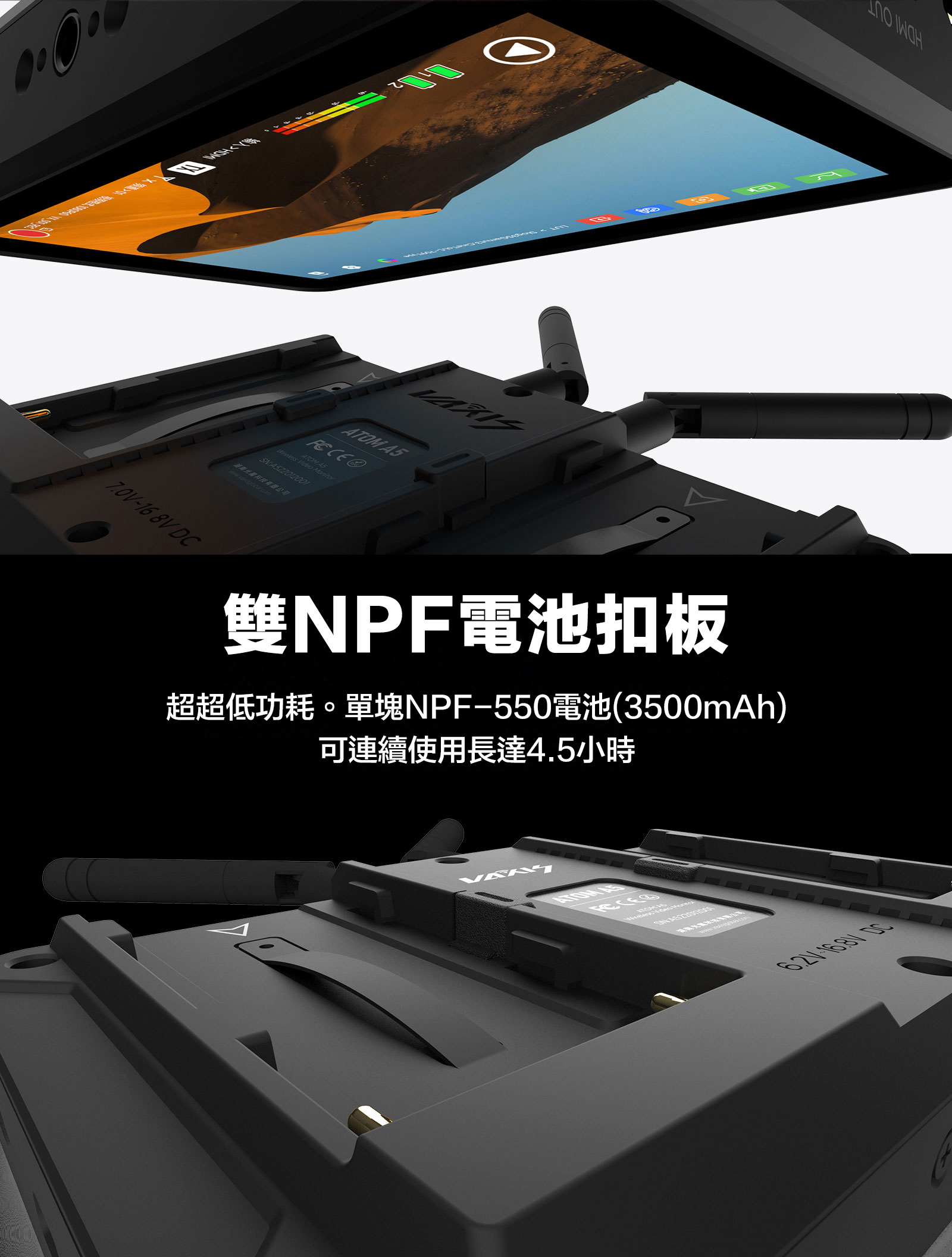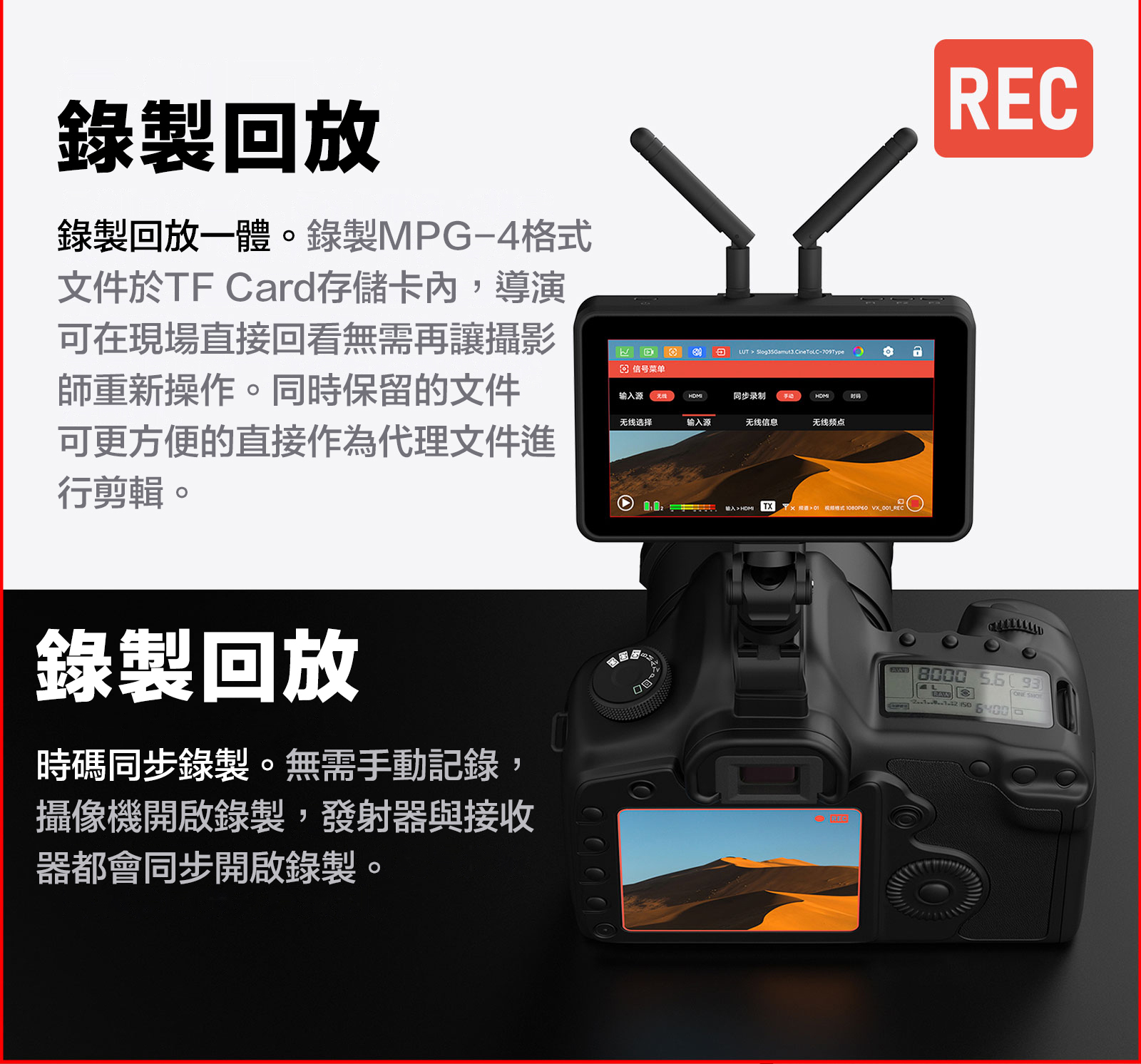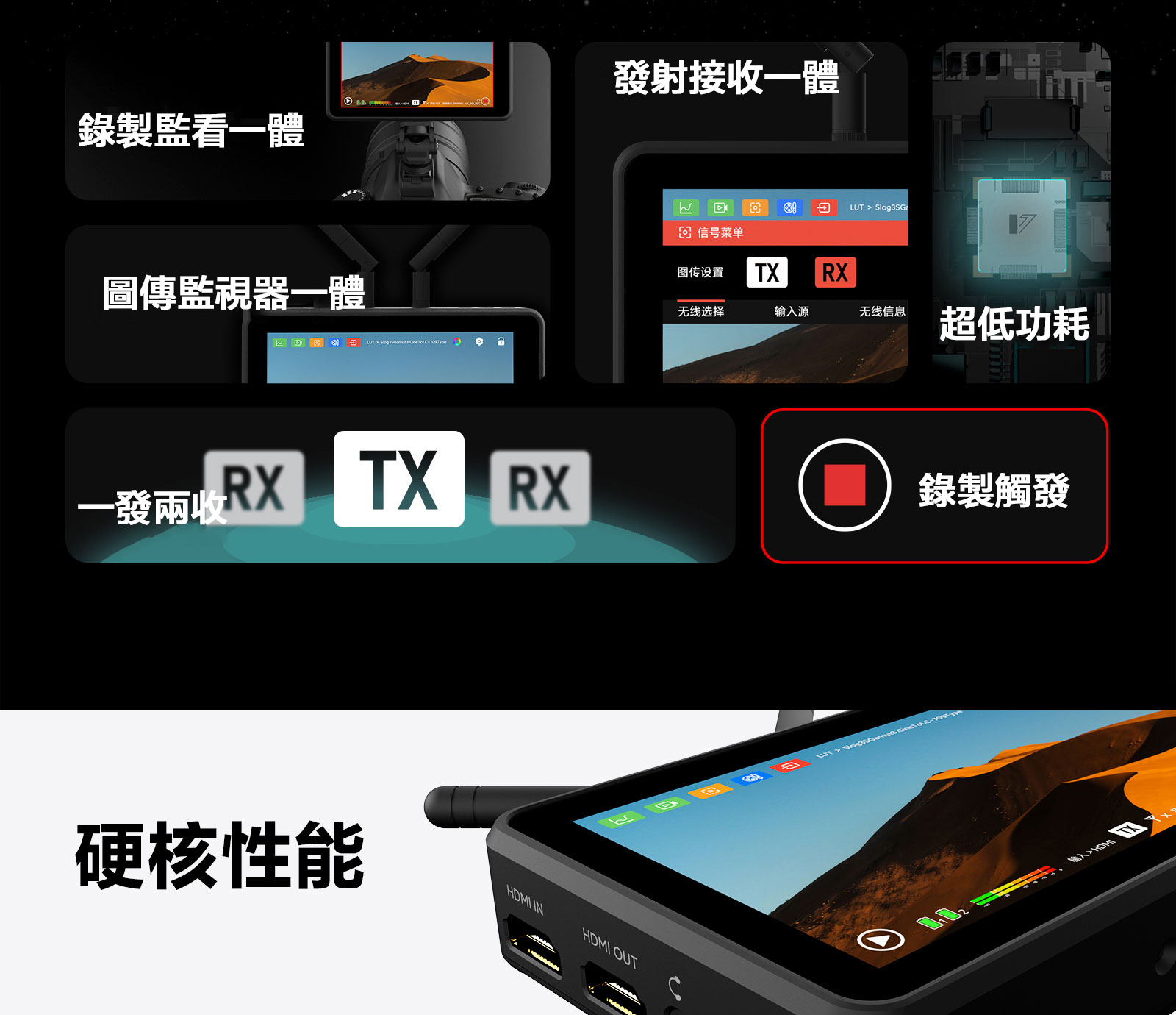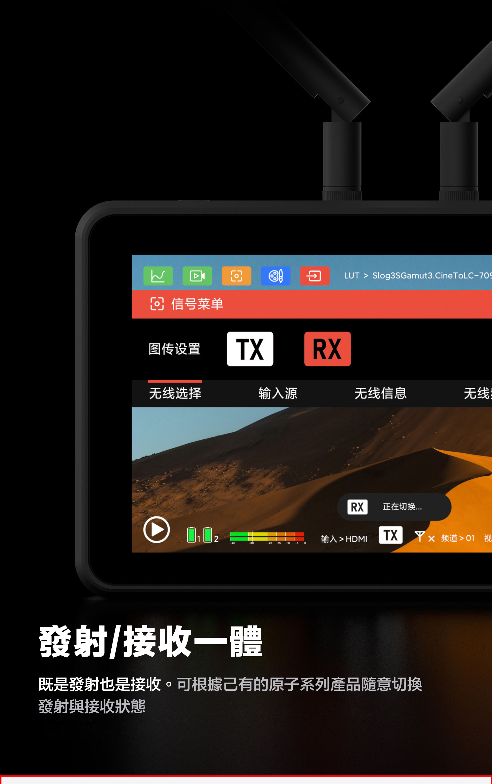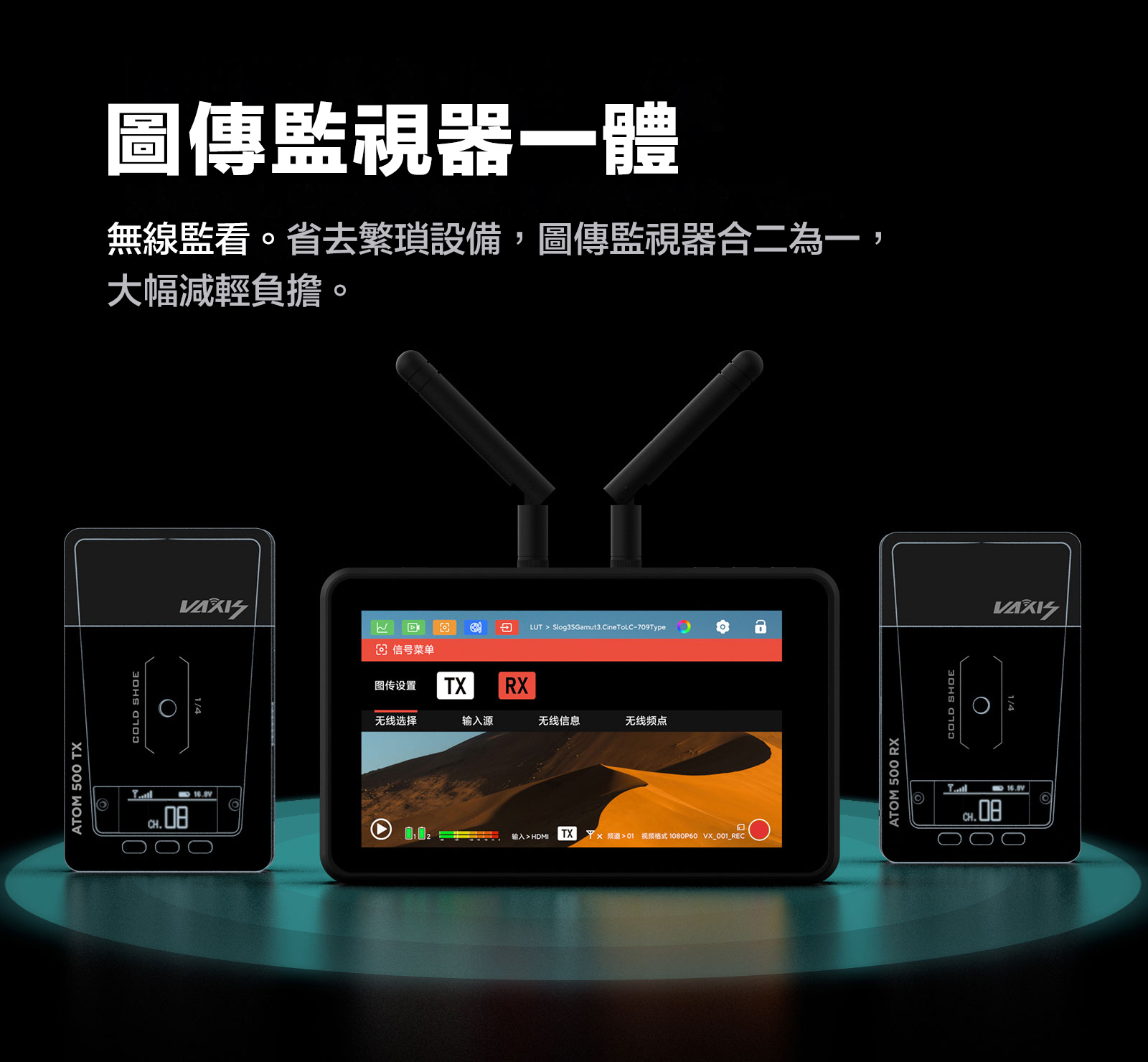 ■ 圖傳監視器一體,省去繁瑣設備,圖傳監視器合二為一