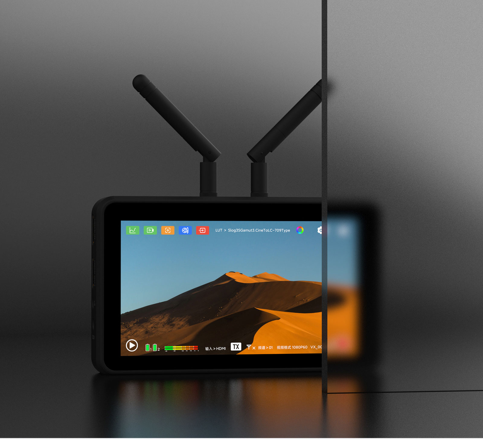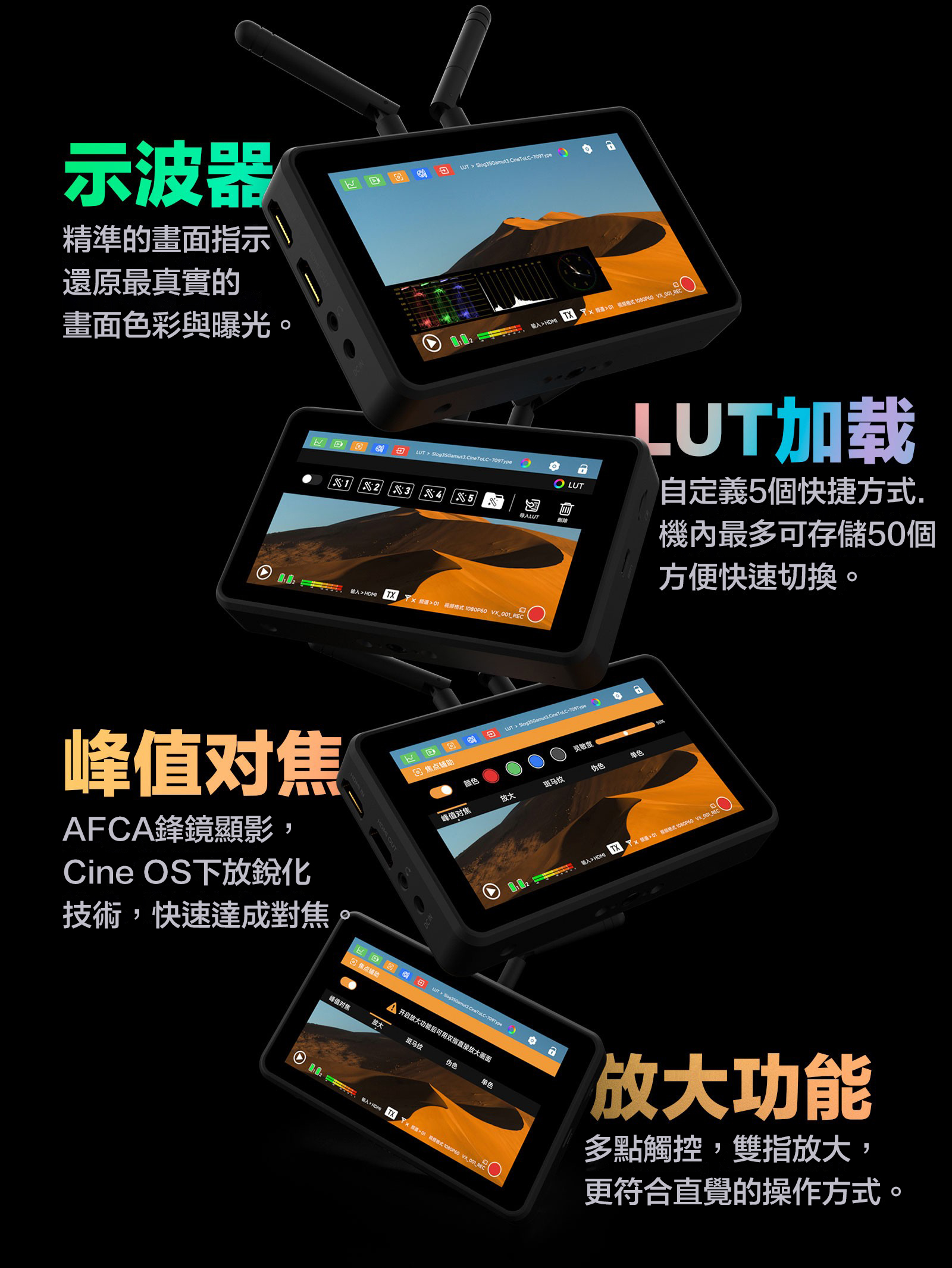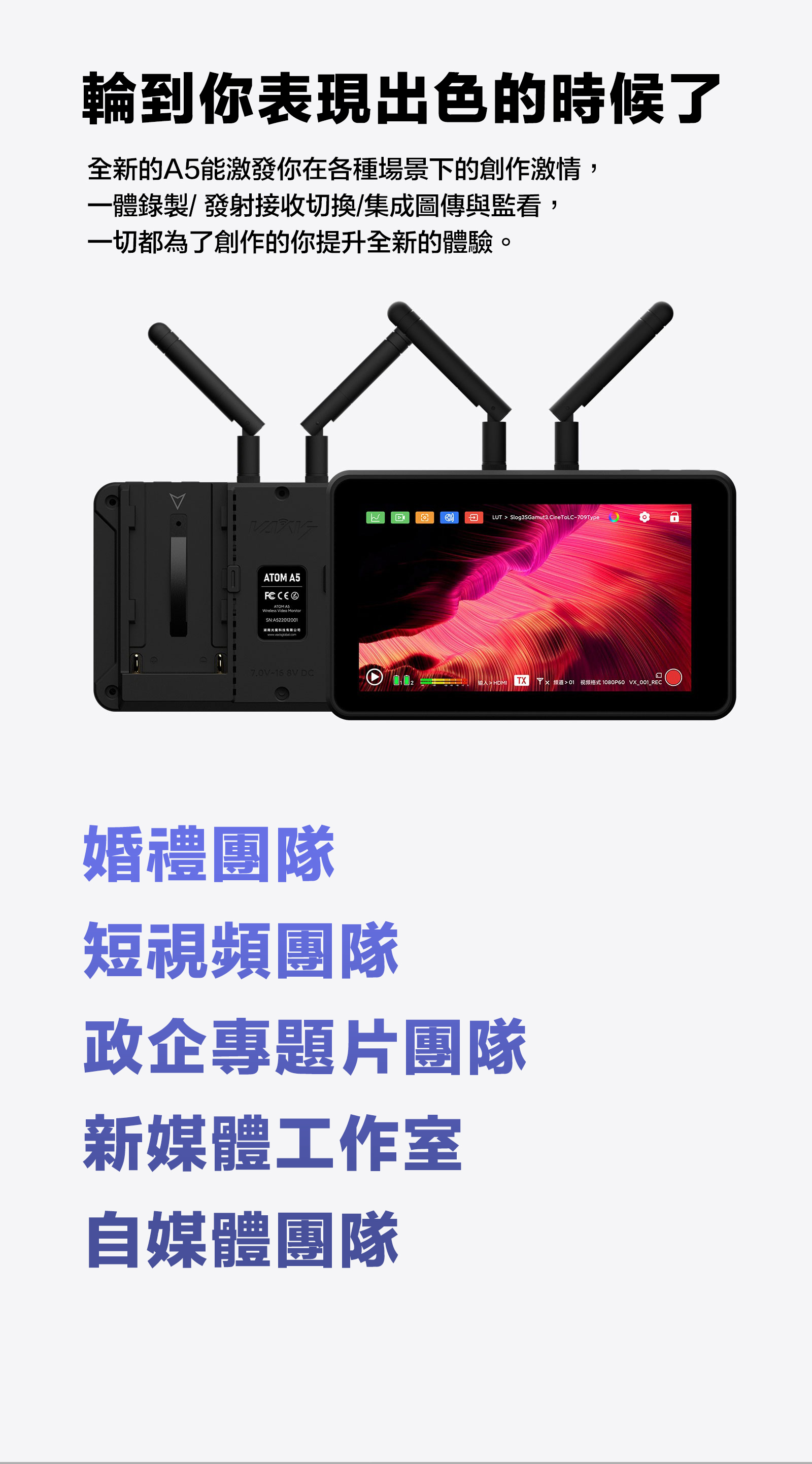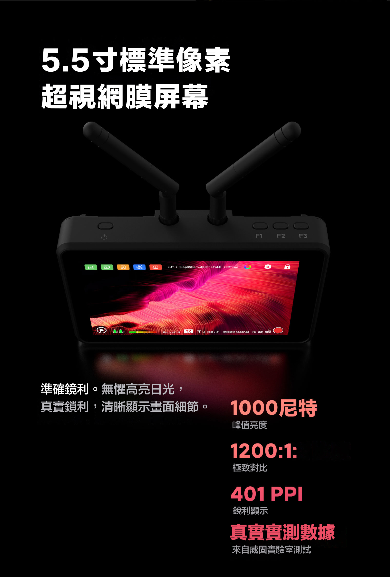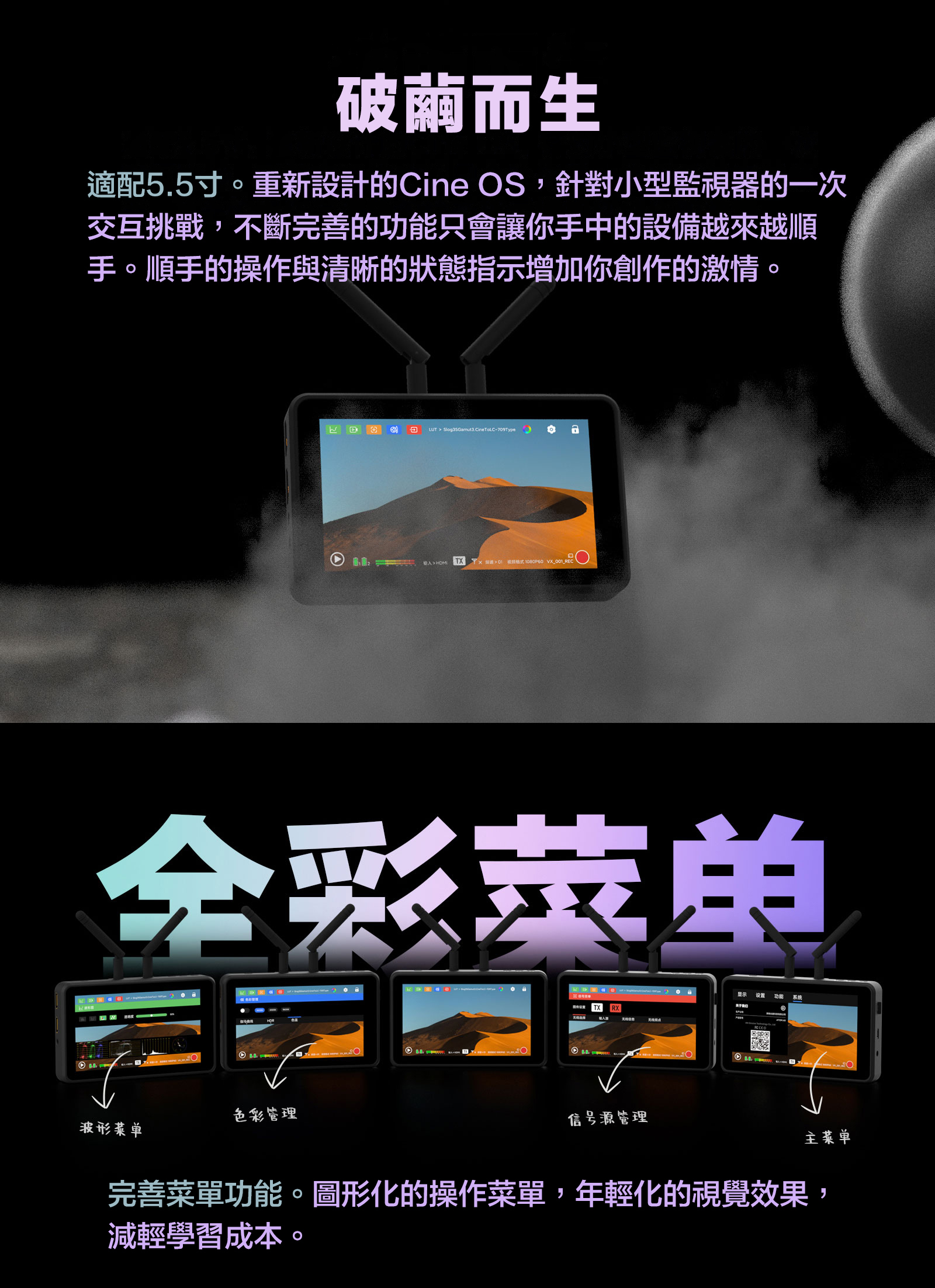 ■ 圖傳監視器一體,省去繁瑣設備,圖傳監視器合二為一