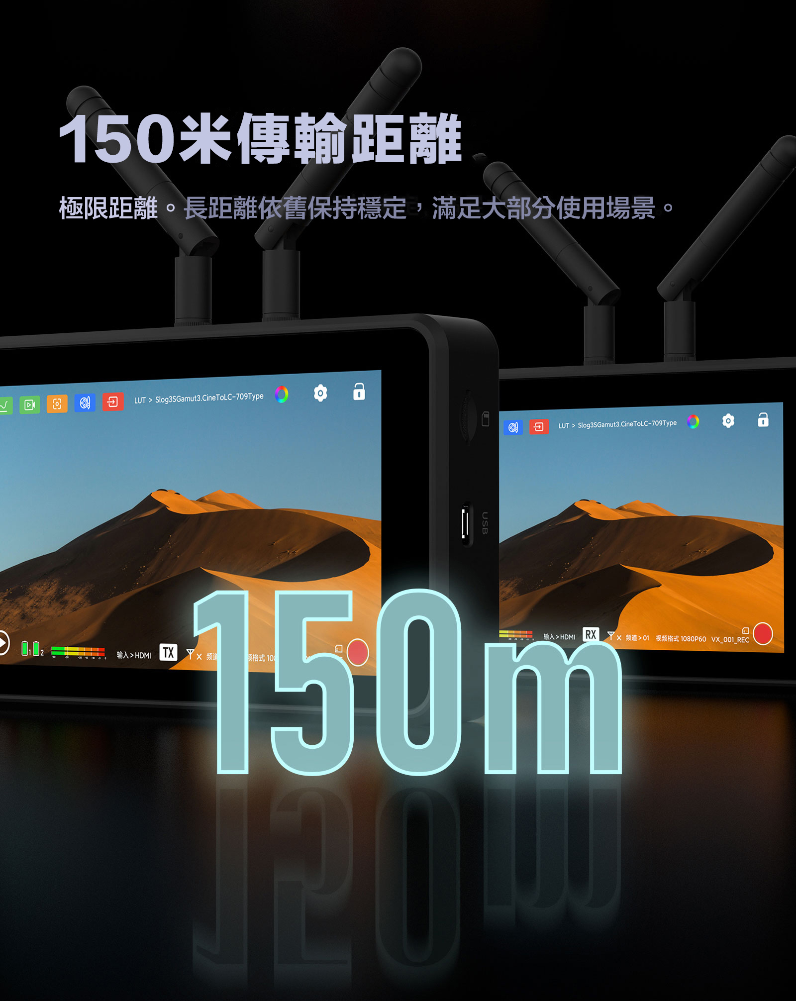 ■ 150米傳輸距離,低延遲更快跟焦