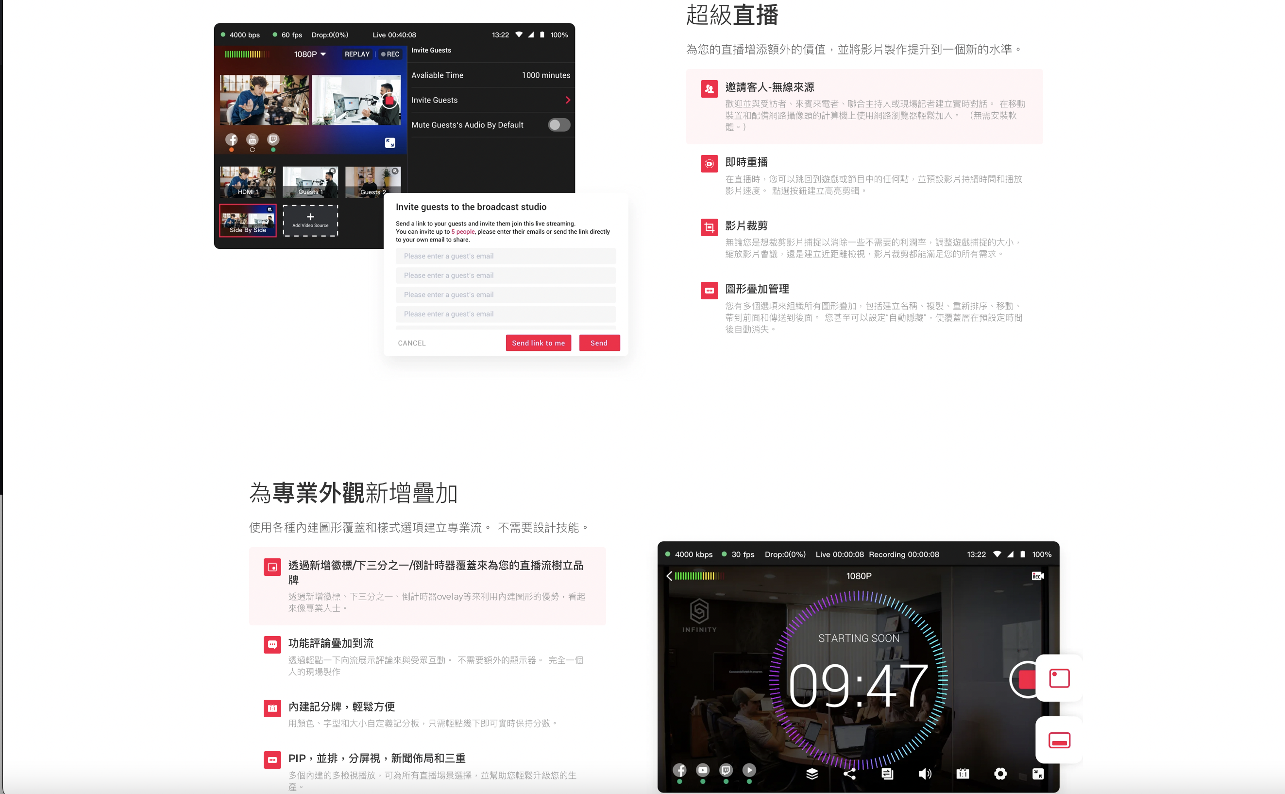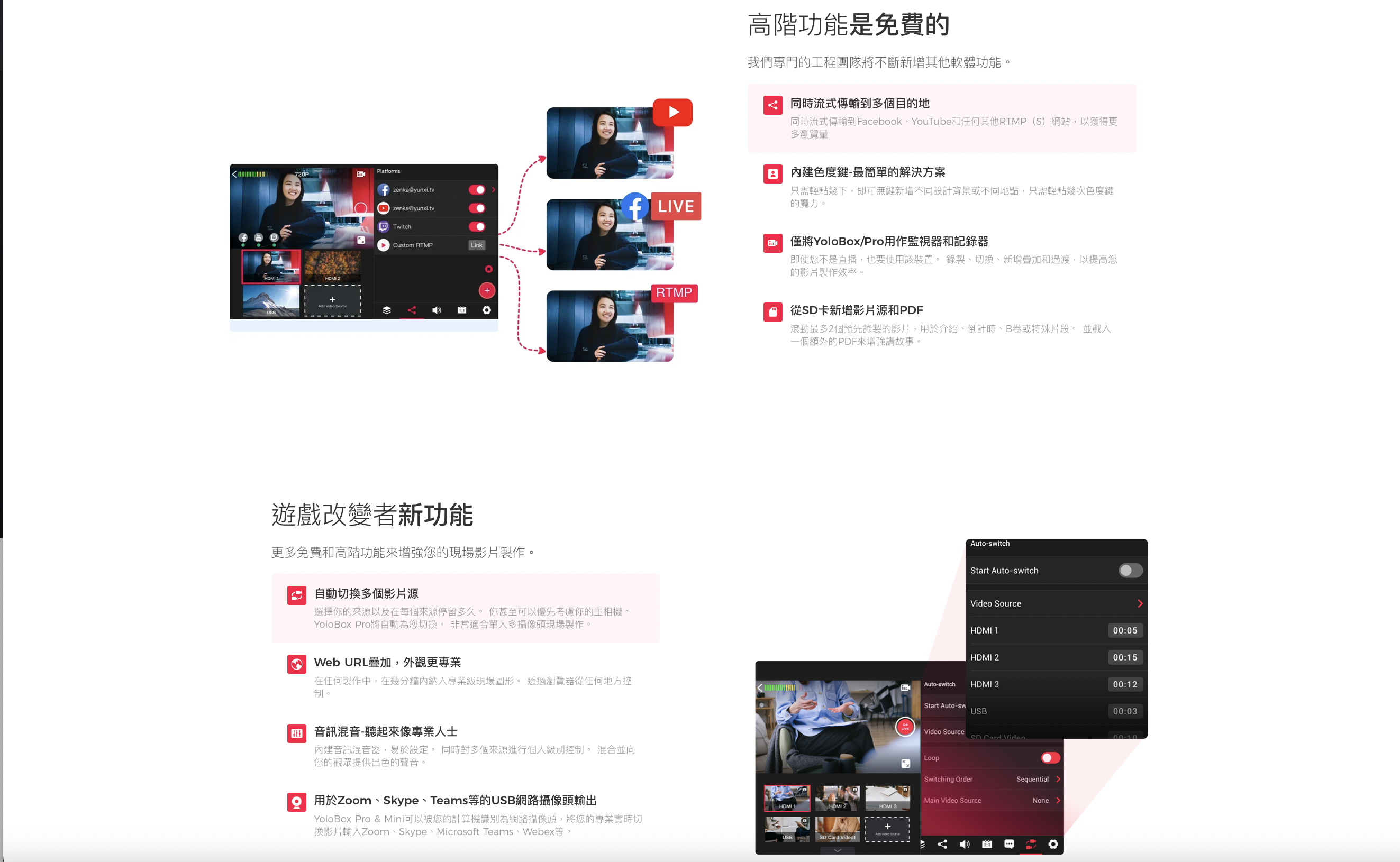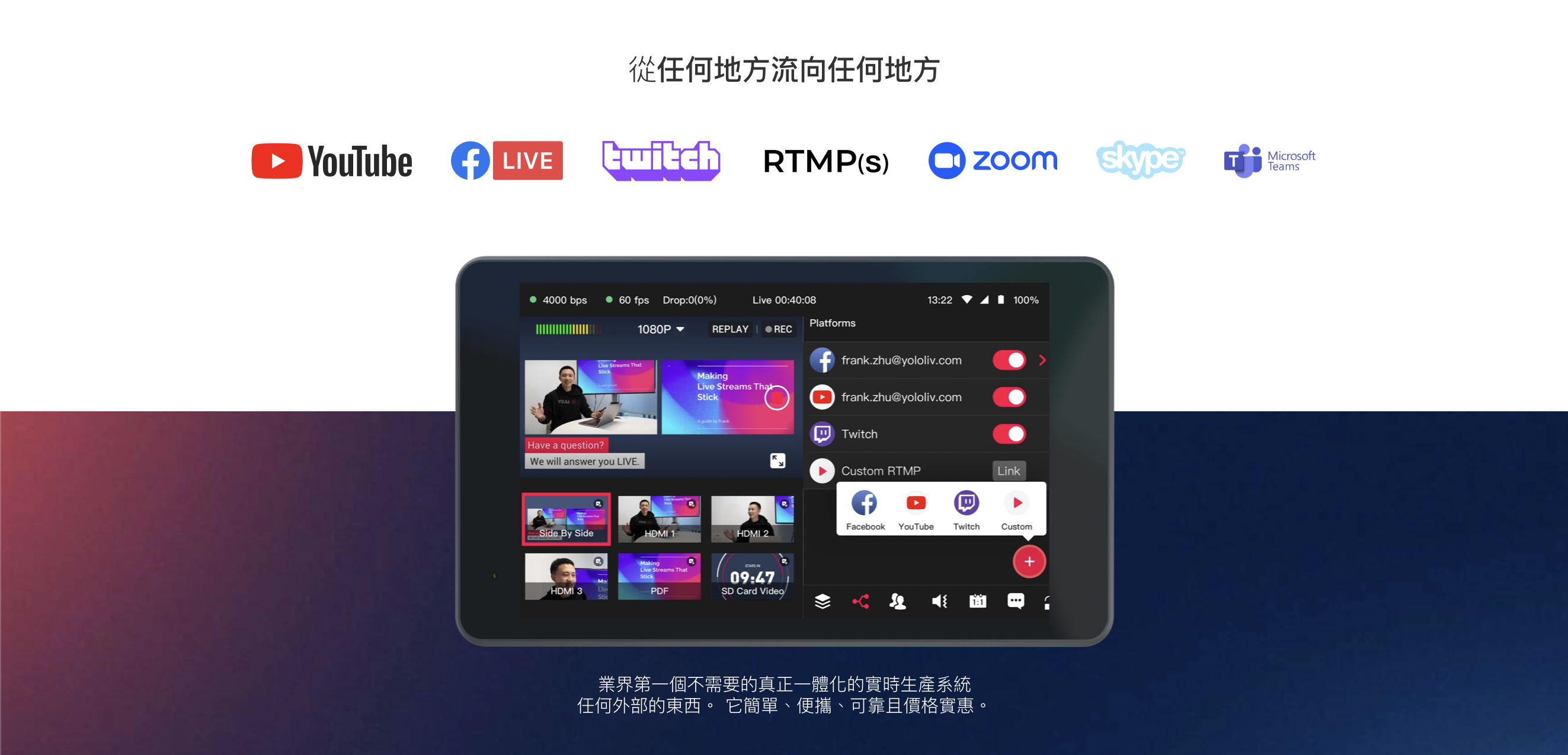 ■ 直接直播Facebook、Youtube、instagram等等不同平台